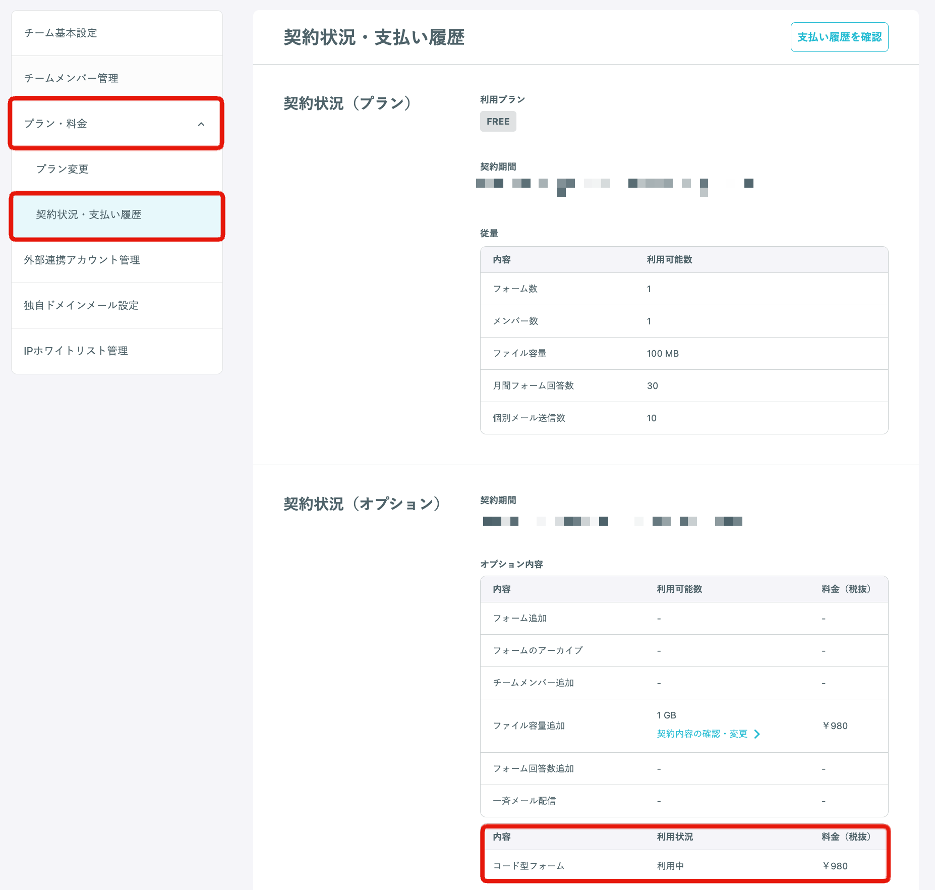 2023年10月24日より、フリープランでコード型のフォームを利用する場合、有料オプションに変更になりました。